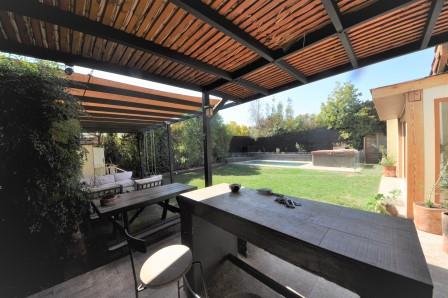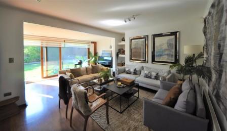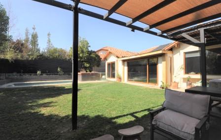 Amplia terraza techada, gran quincho, mesón en obra. Excelente jardin, piscina temperada, jacuzzi.